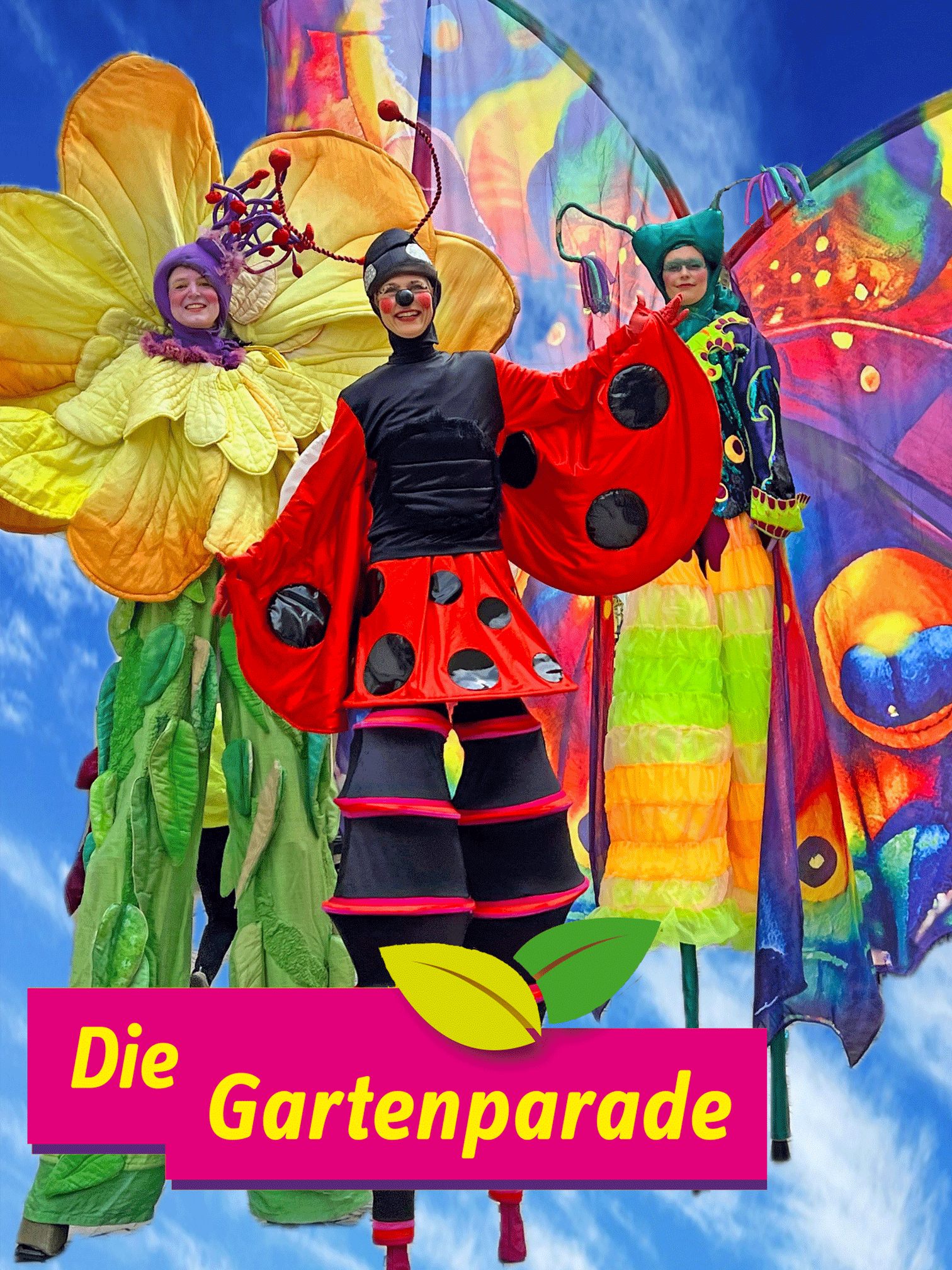 Als witziger Walkact bringen Blumen, Schmetterling und Marienkäfer nicht nur die Herzen Ihrer Gäste zum Strahlen, sondern auch ein Lächeln auf jedes Gesicht – ganz ohne Pollenallergie! Augenzwinkern und humorvolle Gartentipps inklusive (Blattläuse gibt’s gratis dazu!).