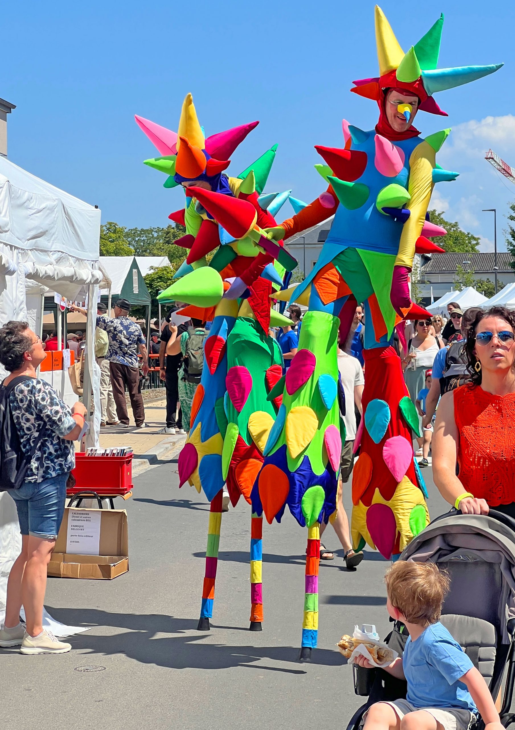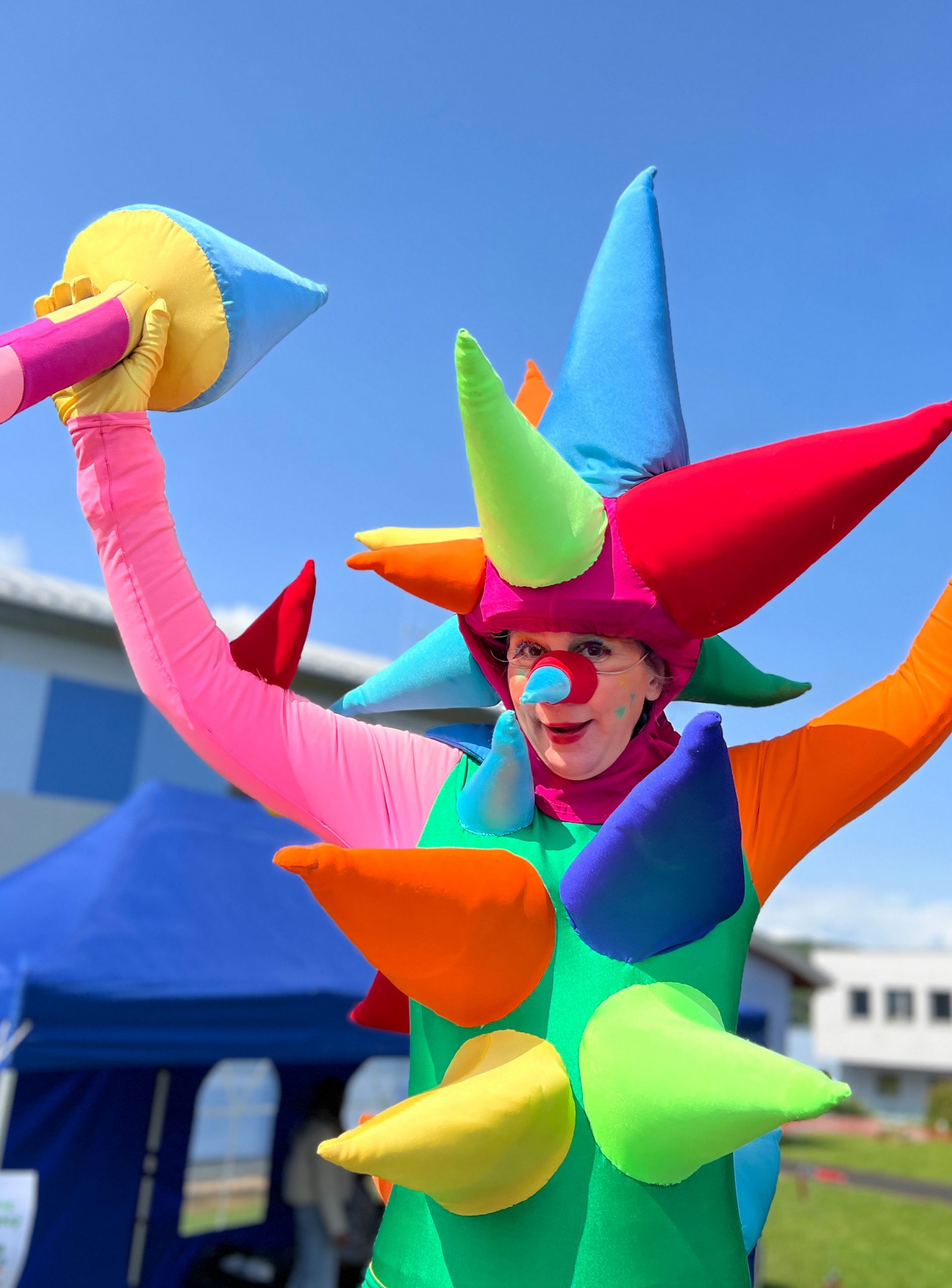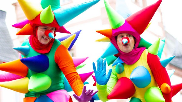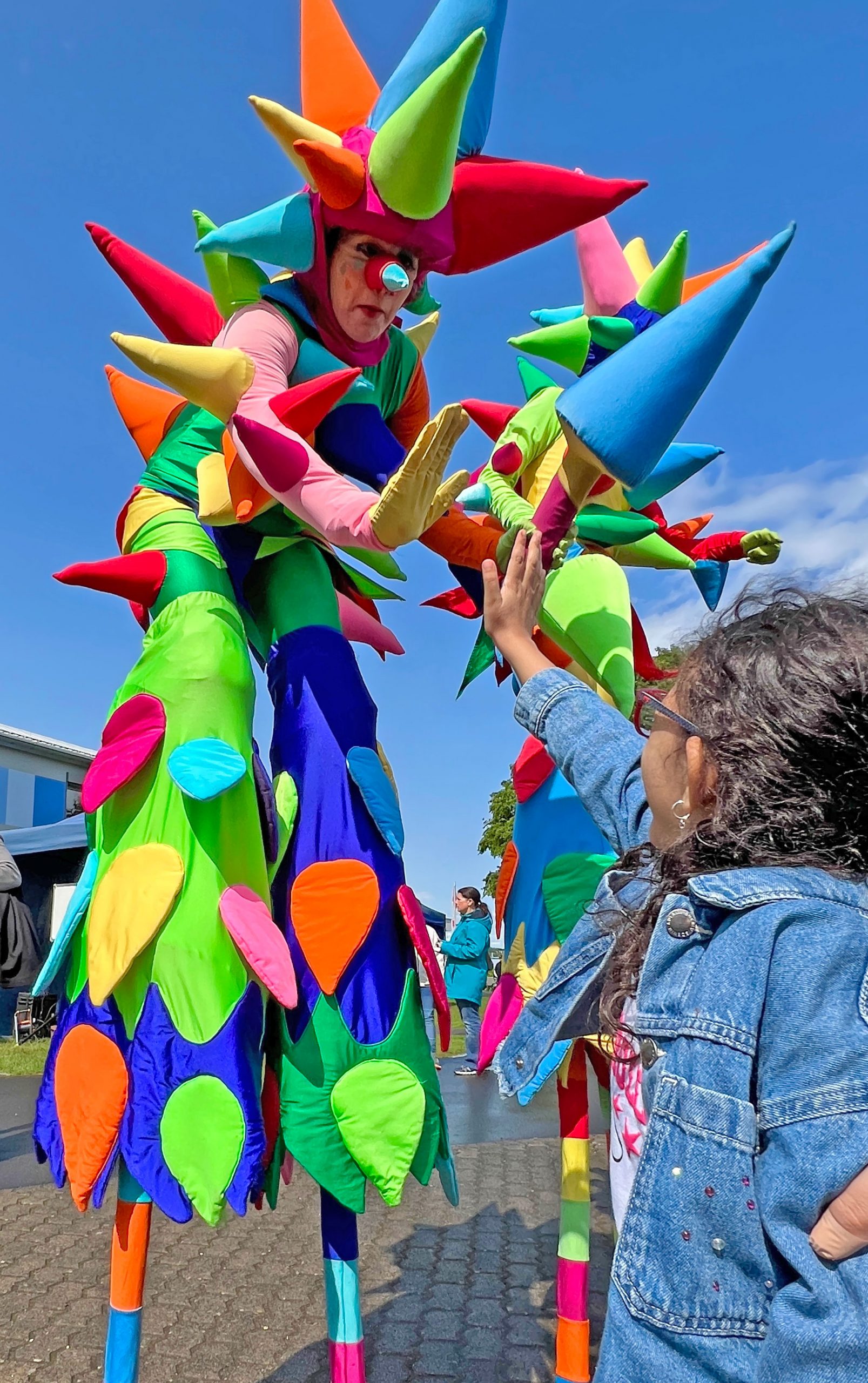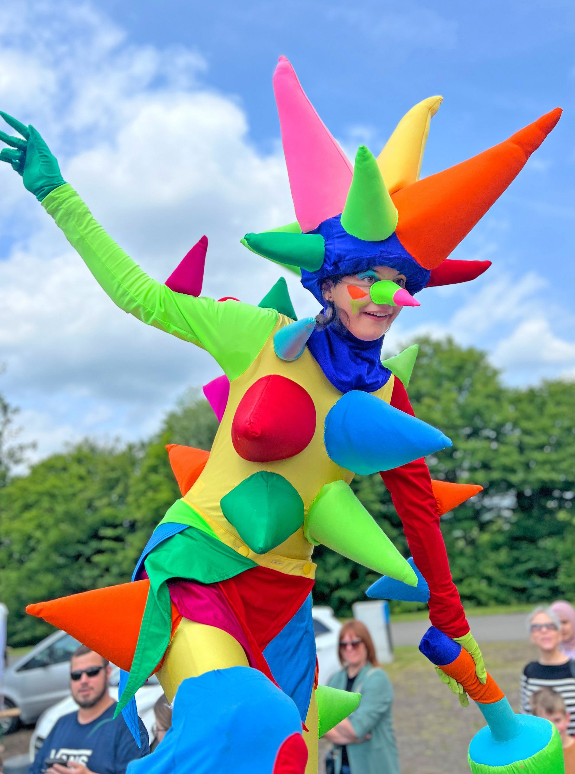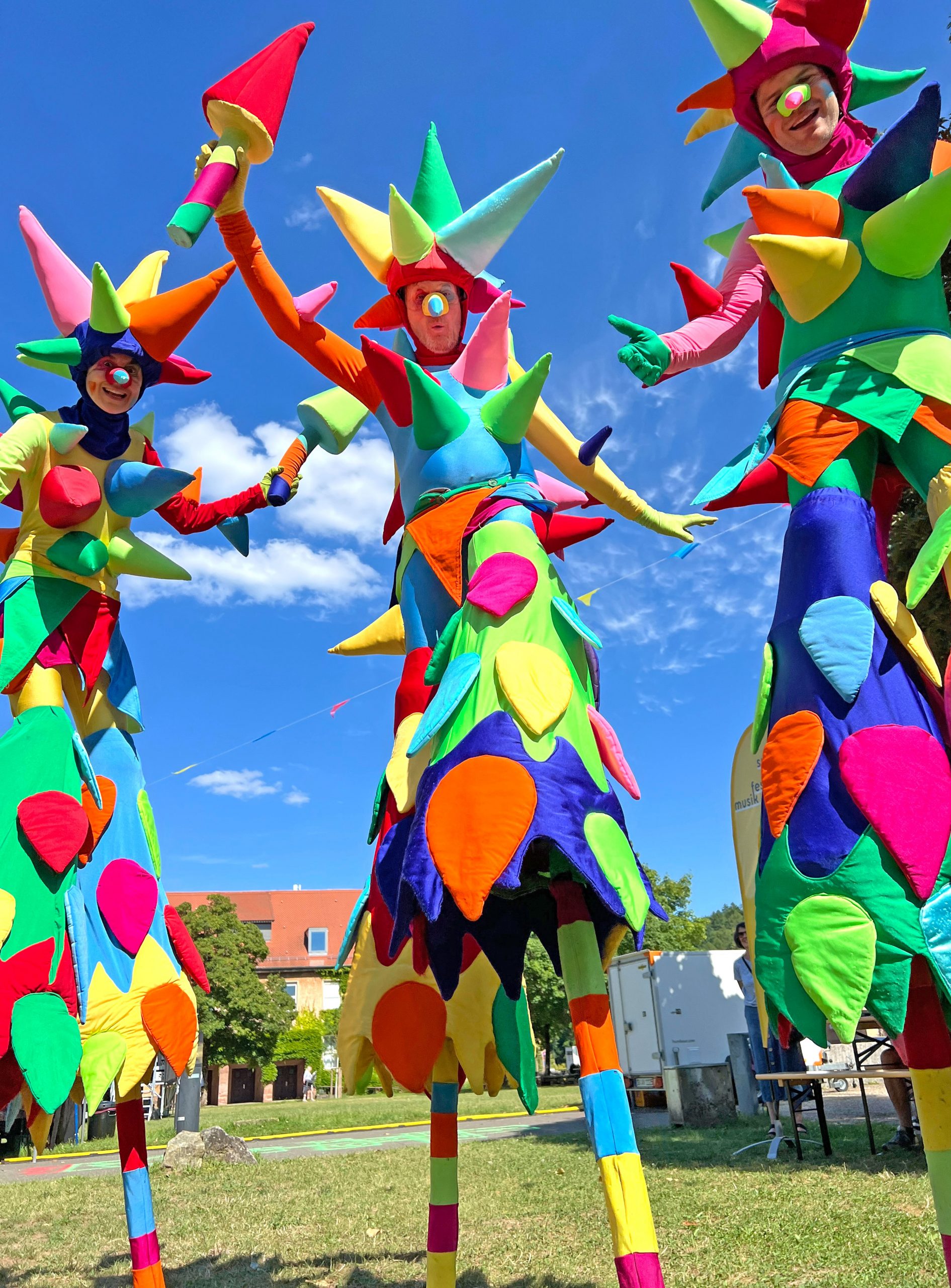 Schon von weitem ein echter Hingucker: Die riesigen Konfettis sorgen für ordentlich Wirbel! Knallbunt, stachelig und voller grenzenloser Spielfreude – das sind die verrückten neuen Figuren des Stelzentheaters CIRCOLO.